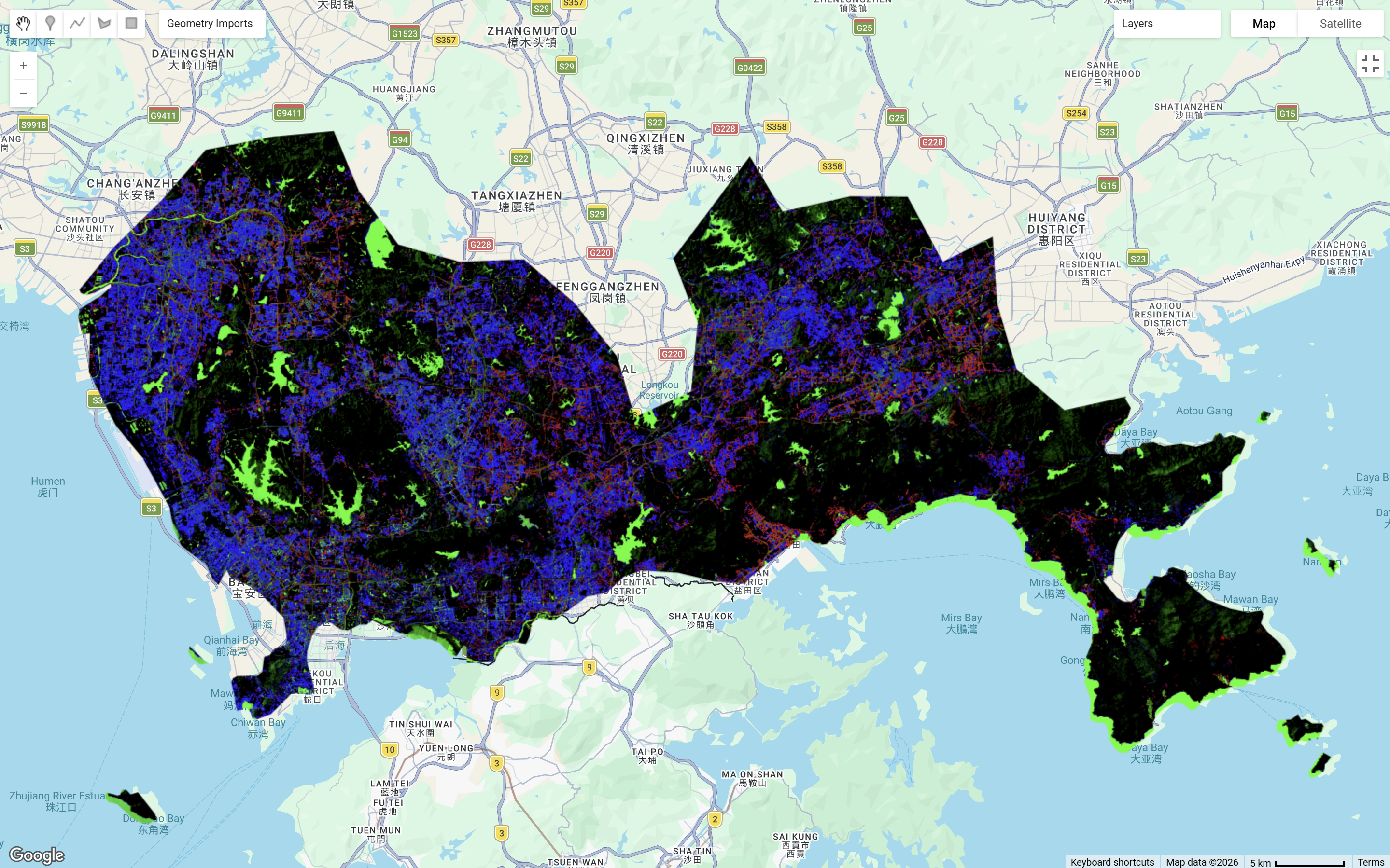 This section will extend on classification algorithms in GEE from last chapter. Focusing on sub-pixel analysis anmd object-based analysis, the following will continue using Shenzhen, China as the study area.
