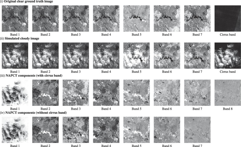 PCA is useful for simplifying image data and showing main patterns, but it does not directly remove cloud contamination. Extending on PCA, Xu et al. (2019) proposed noise-adjusted principal components transform (NAPCT) for thin cloud removal. Intrestingly, cloud-contaminated pixels actually have the highest signal-to-noise ratio due to spatial variation, where NAPCT can isolate them into the first component (NAPC1). Applying an inverse transformating of without NAPC1 will produce a cloud-free image.